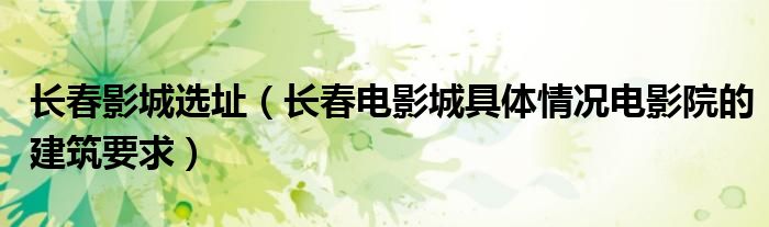 长春影城选址(长春电影城具体情况电影院的建筑要求)