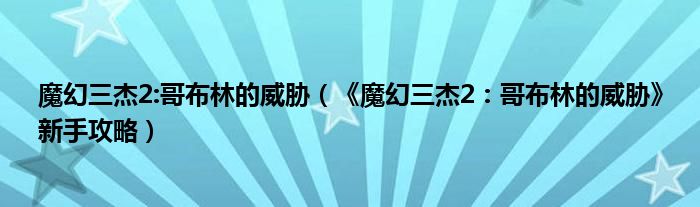 魔幻三杰2:哥布林的威胁(《魔幻三杰2:哥布林的威胁》新手攻略)