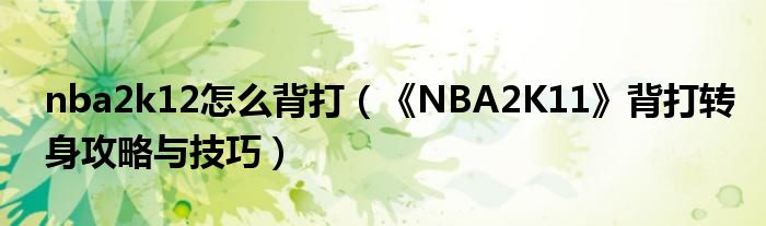 大家好,太太来为大家解答以上问题。nba2k12怎么背打,《NBA2K11》背打转身攻略与技巧很多人还不知道,现在让我们一起来看看吧!