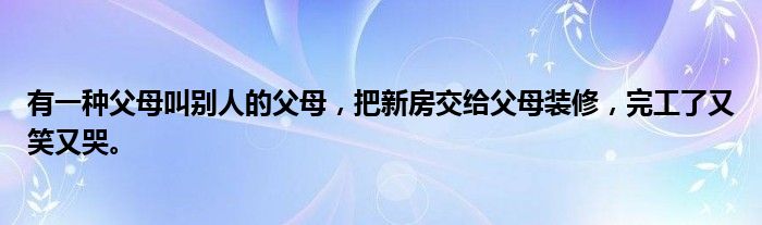 大家好,今天乐乐来为大家解答以上问题。有一种父母叫别人的父母,把新房交给父母装修,完工了又笑又哭。很多人还不知道,现在让我们一起来看看吧!