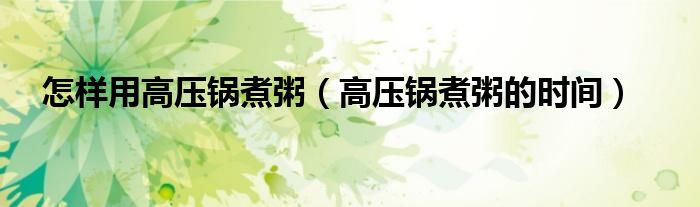 怎样用高压锅煮粥(高压锅煮粥的时间)