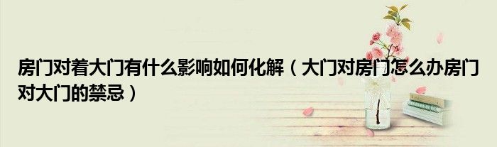 房门对大门被视为是不吉利的。比如:厨房门对着大门,属于宅门内冲煞的一种,会令房内的人发生灾祸。因为厨房为煮食之所,在学上属于燥热盛旺,“孤阳不生,独阴不长”,燥火属孤阳。而且还说“开门见灶,属钱财多耗之相”所以大门不能与厨房对。