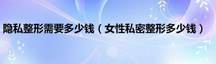 导读 大家好,linda来为大家解答以上的问题。隐私整形需要多少钱,女性私密整形多少钱很多人还不知道,现在让我们一起来看看吧!1、女性有私人整