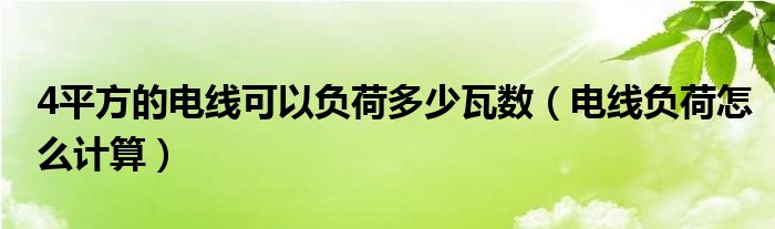 4平方的电线可以负荷多少瓦数(电线负荷怎么计算)