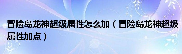 冒险岛龙神超级属性怎么加(冒险岛龙神超级属性加点)