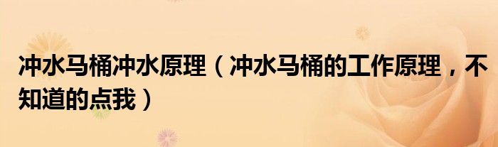 冲水马桶冲水原理(冲水马桶的工作原理,不知道的点我)