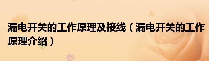 漏电开关的工作原理及接线(漏电开关的工作原理介绍)