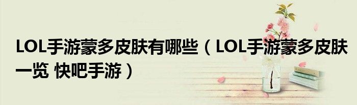 导读 大家好,太太来为大家解答以上问题。LOL手游蒙多皮肤有哪些,LOL手游蒙多皮肤一览 快吧手游很多人还不知道,现在让我们一起来看看吧!1、L