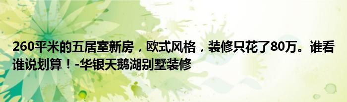 大家好,今天乐乐来为大家解答以上问题。260平米的五居室新房,欧式风格,装修只花了80万。谁看谁说划算!-华银天鹅湖别墅装修很多人还不知道,现在让我们一起来看看吧!