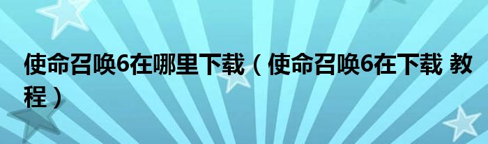 使命召唤6在哪里下载(使命召唤6在下载 教程)