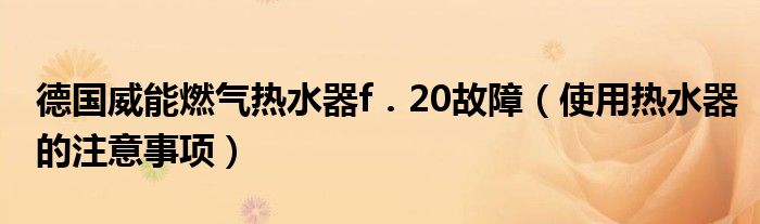 大家好,今天乐乐来为大家解答以上问题。德国威能燃气热水器f.20故障,使用热水器的注意事项很多人还不知道,现在让我们一起来看看吧!