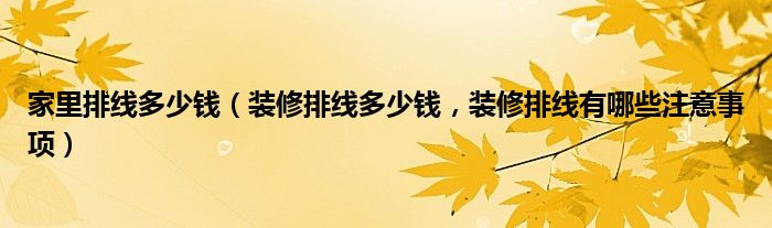 家里排线多少钱(装修排线多少钱,装修排线有哪些注意事项)