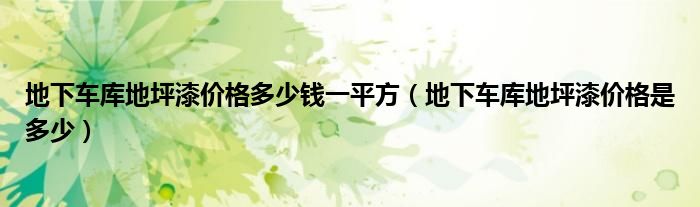 地下车库地坪漆价格多少钱一平方(地下车库地坪漆价格是多少)