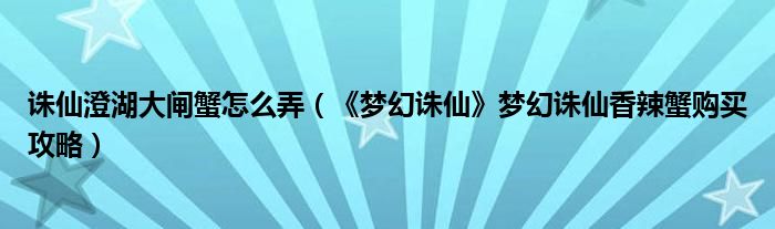 诛仙澄湖大闸蟹怎么弄(《梦幻诛仙》梦幻诛仙香辣蟹购买攻略)