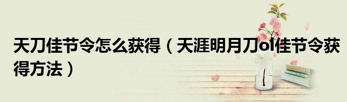 导读 大家好,太太来为大家解答以上问题。天刀佳节令怎么获得,天涯明月刀ol佳节令获得方法很多人还不知道,现在让我们一起来看看吧!1、天涯明