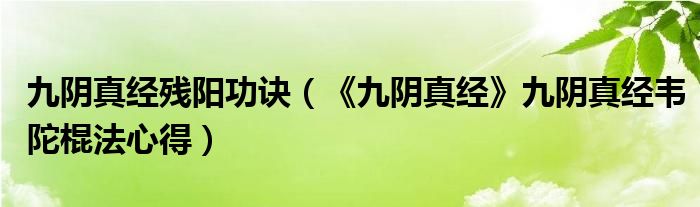 九阴真经残阳功诀(《九阴真经》九阴真经韦陀棍法心得)