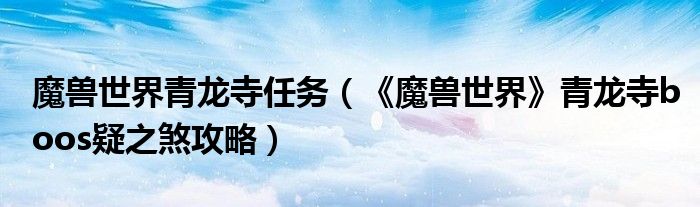 魔兽世界青龙寺任务(《魔兽世界》青龙寺boos疑之煞攻略)