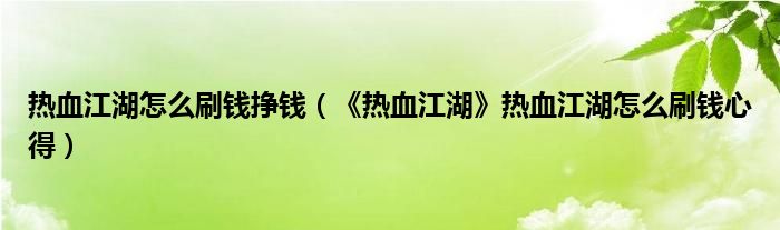 热血江湖怎么刷钱挣钱(《热血江湖》热血江湖怎么刷钱心得)