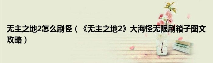 导读 大家好,太太来为大家解答以上问题。无主之地2怎么刷怪,《无主之地2》大海怪无限刷箱子图文攻略很多人还不知道,现在让我们一起来看看吧!