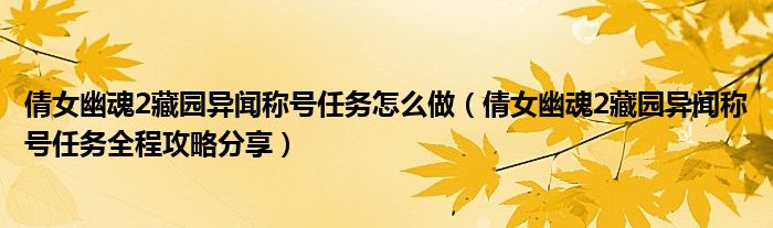 倩女幽魂2藏园异闻称号任务怎么做(倩女幽魂2藏园异闻称号任务全程攻略分享)