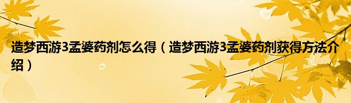 造梦西游3孟婆药剂怎么得(造梦西游3孟婆药剂获得方法介绍)