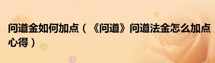 问道金如何加点(《问道》问道法金怎么加点心得)