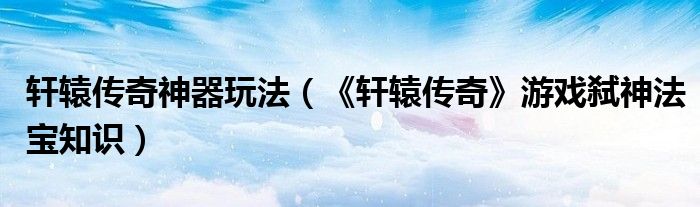 轩辕传奇神器玩法(《轩辕传奇》游戏弑神法宝知识)