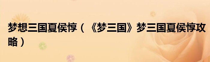 梦想三国夏侯惇(《梦三国》梦三国夏侯惇攻略)