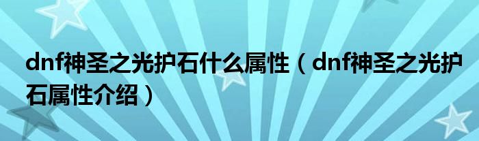 dnf神圣之光护石什么属性(dnf神圣之光护石属性介绍)