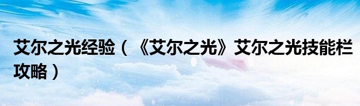 导读 大家好,太太来为大家解答以上问题。艾尔之光经验,《艾尔之光》艾尔之光技能栏攻略很多人还不知道,现在让我们一起来看看吧!1、艾尔之光
