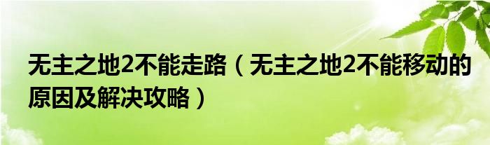 无主之地2不能走路(无主之地2不能移动的原因及解决攻略)