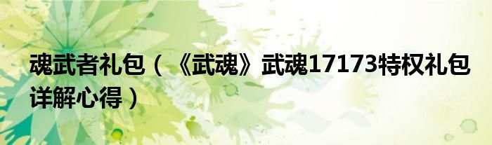 导读 大家好,太太来为大家解答以上问题。魂武者礼包,《武魂》武魂17173特权礼包详解心得很多人还不知道,现在让我们一起来看看吧!1、武魂1717