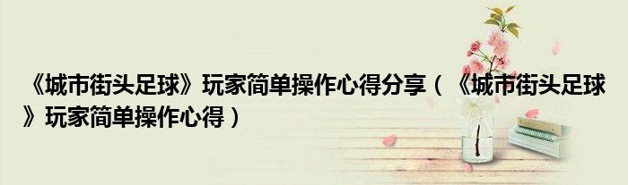 《城市街头足球》玩家简单操作心得分享(《城市街头足球》玩家简单操作心得)