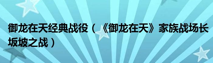 御龙在天经典战役(《御龙在天》家族战场长坂坡之战)