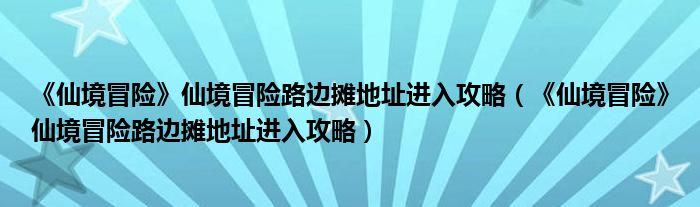 《仙境冒险》仙境冒险路边摊地址进入攻略(《仙境冒险》仙境冒险路边摊地址进入攻略)