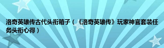导读 大家好,太太来为大家解答以上问题。洛奇英雄传古代头衔箱子,《洛奇英雄传》玩家神官套装任务头衔心得很多人还不知道,现在让我们一起来看