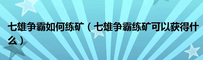 七雄争霸如何练矿(七雄争霸练矿可以获得什么)