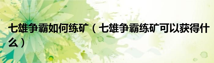 七雄争霸如何练矿(七雄争霸练矿可以获得什么)