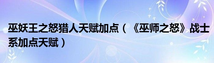 巫妖王之怒猎人天赋加点(《巫师之怒》战士系加点天赋)