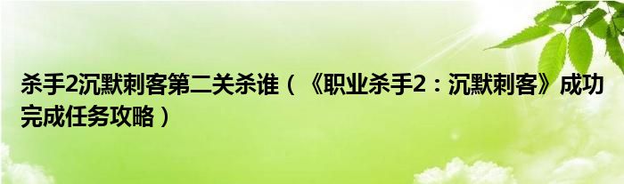 杀手2沉默刺客第二关杀谁(《职业杀手2:沉默刺客》成功完成任务攻略)