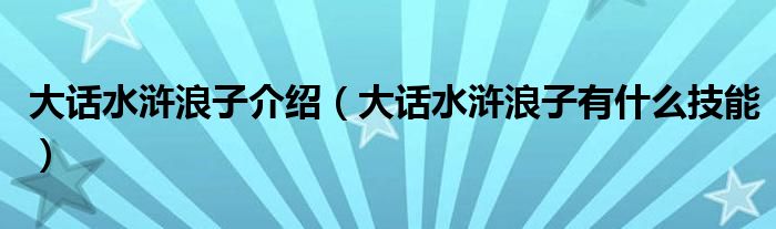 大话水浒浪子介绍(大话水浒浪子有什么技能)