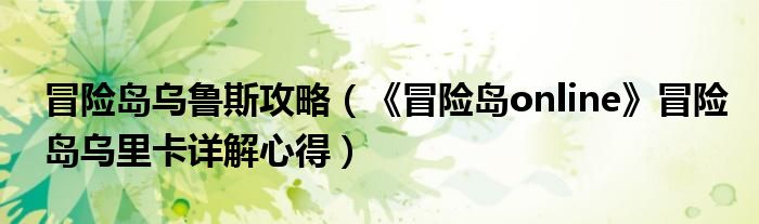 导读 大家好,太太来为大家解答以上问题。冒险岛乌鲁斯攻略,《冒险岛online》冒险岛乌里卡详解心得很多人还不知道,现在让我们一起来看看吧!1