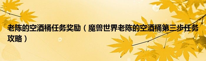 老陈的空酒桶任务奖励(魔兽世界老陈的空酒桶第三步任务攻略)