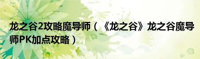 大家好,太太来为大家解答以上问题。龙之谷2攻略魔导师,《龙之谷》龙之谷魔导师PK加点攻略很多人还不知道,现在让我们一起来看看吧!