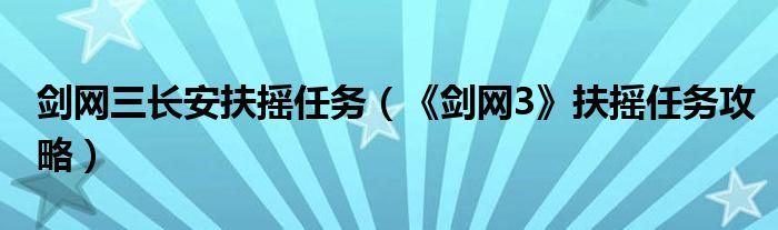 大家好,太太来为大家解答以上问题。剑网三长安扶摇任务,《剑网3》扶摇任务攻略很多人还不知道,现在让我们一起来看看吧!