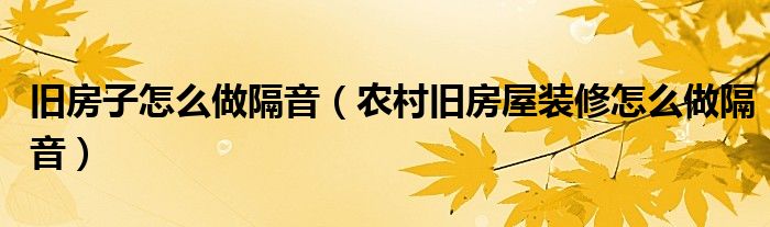 旧房子怎么做隔音(农村旧房屋装修怎么做隔音)