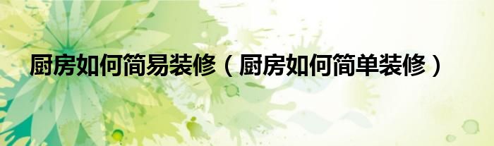 厨房简单装修的方法有是:一、地面装修,地面铺普通抛光砖,可用800×800毫米规格;二、墙面装修,墙面也用瓷砖铺贴,不设腰线,用300×600毫米规格;三、吊顶装修,用铝扣板吊顶,并结合灯具和通风设备;四、电源改造,减少单个电源数量,增加排插;五、橱柜搭配,将L形橱柜靠墙安装,不考虑吊柜的结合使用。