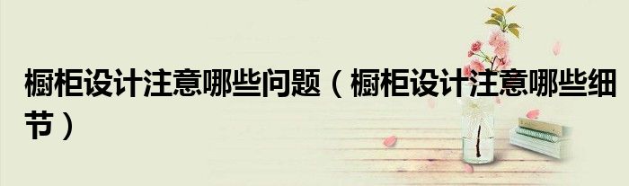 橱柜设计需注意的细节有:一、橱柜开孔细节,橱柜上面需要开孔的位置,包括了燃气灶水槽以及烟道部分,需注意开孔尺寸不能开大;二、橱柜拉手细节,橱柜拉手不建议安装明拉手,要注意使用便捷问题;三、橱柜挡水条细节,注意橱柜上要前后都安装挡水条;四、橱柜置物架细节,注意橱柜置物架摆放的位置或安装位置。