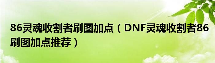 86灵魂收割者刷图加点(DNF灵魂收割者86刷图加点推荐)