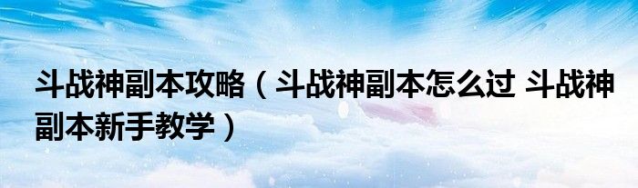 大家好,太太来为大家解答以上问题。斗战神副本攻略,斗战神副本怎么过 斗战神副本新手教学很多人还不知道,现在让我们一起来看看吧!